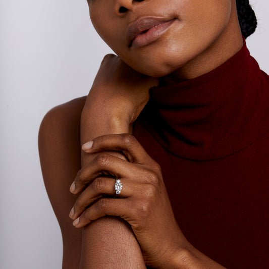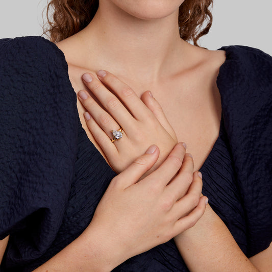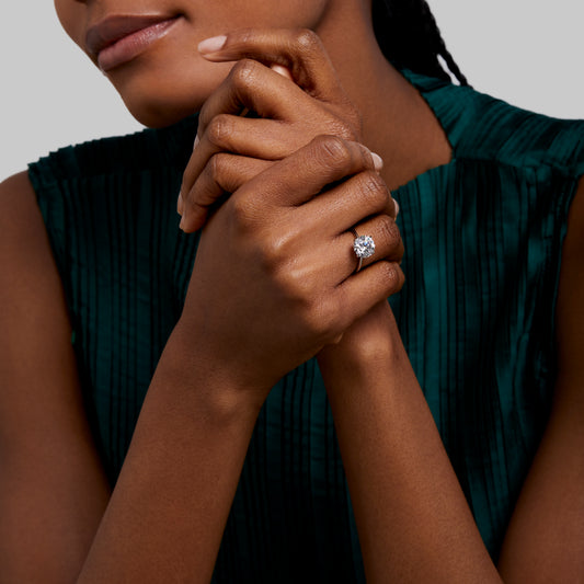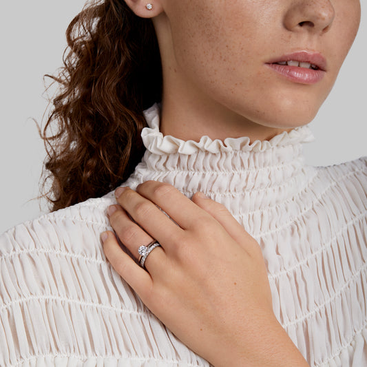 Each engagement ring is crafted with our signature man-made Skydiamonds and set in recycled precious metals, ensuring sustainable luxury. We also offer complimentary ring resizing either before or after your proposal, so you can be confident in the perfect fit.