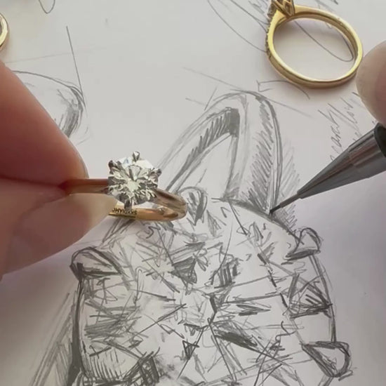 The Cathedral Solitaire Ring is a perfect way to express your commitment; timeless and elegant, its power is in its simplicity - a single Round Brilliant Skydiamond shines with brilliance and purity in an encompassing Cathedral classic six-claw setting in Platinum and tapered, delicate band in recycled 18ct Yellow Gold. The solitaire Skydiamond stone weight is 1ct Carats.