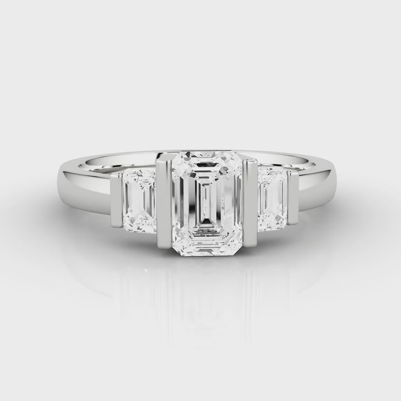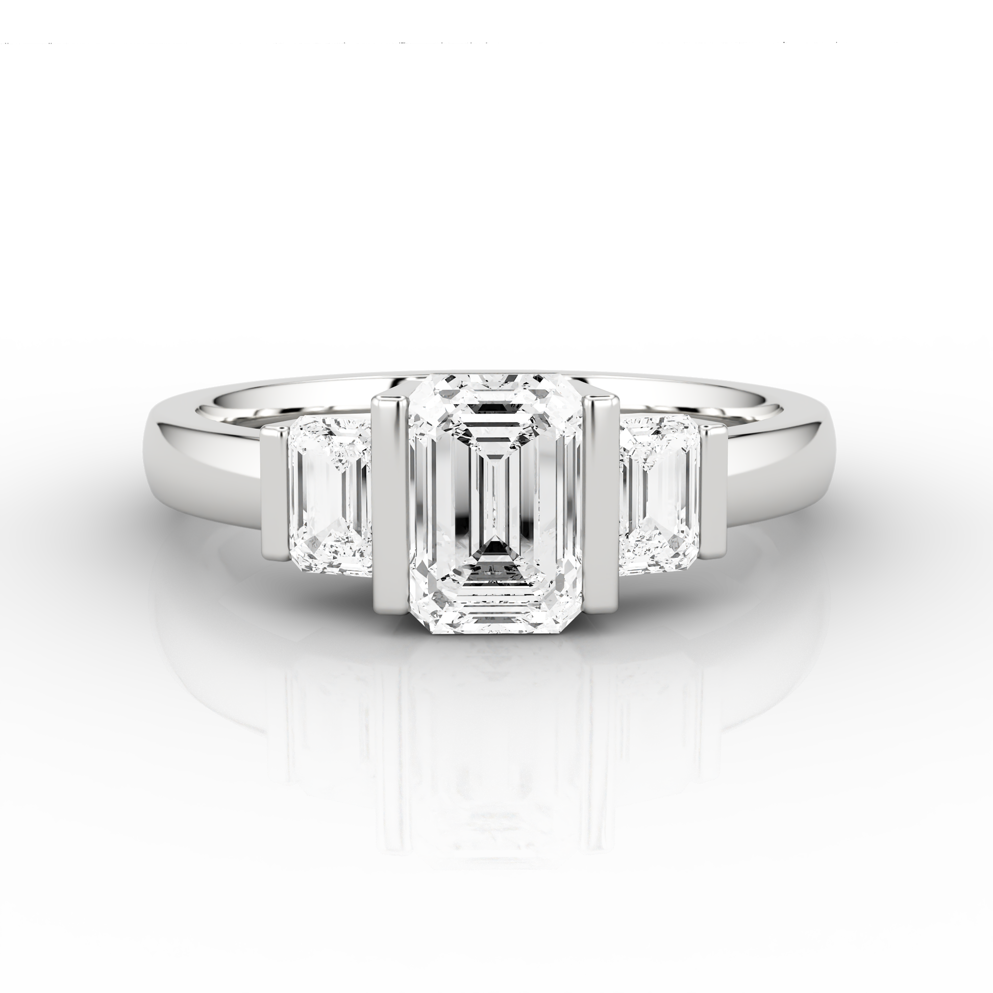 - 0.98ct emerald center stone with two side stones 0.24cts each.