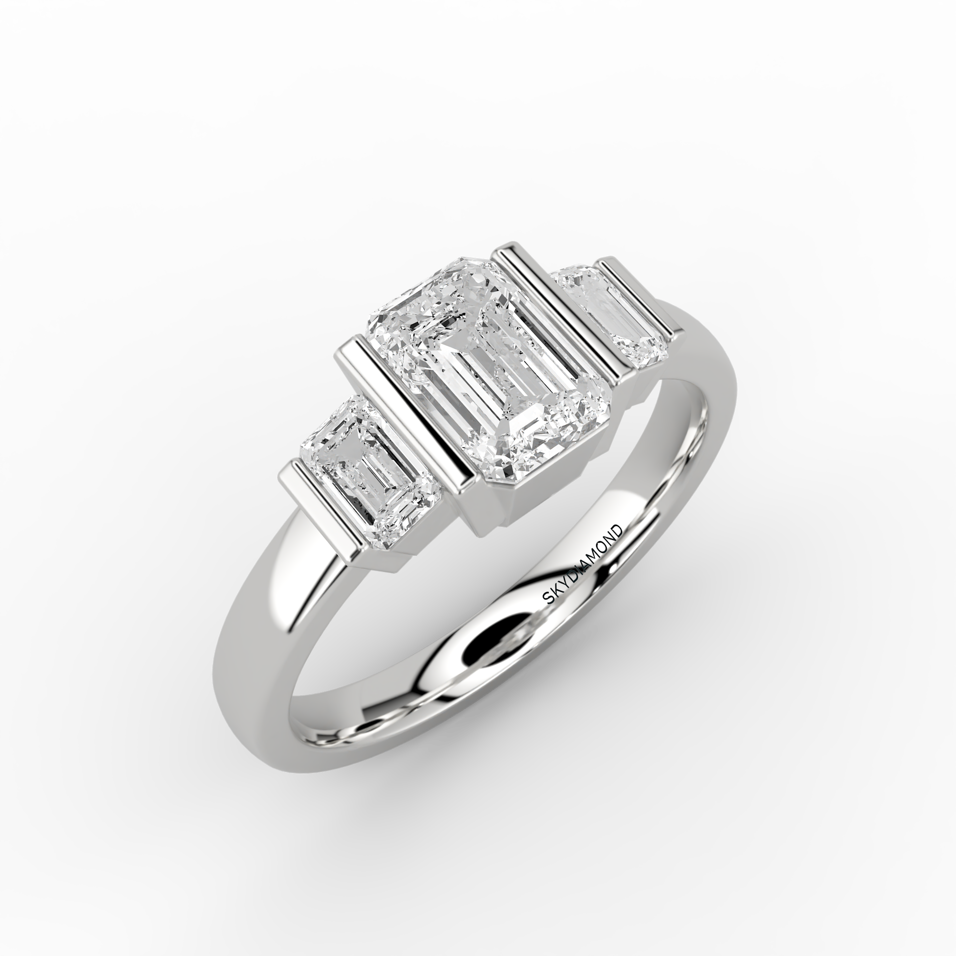 This Deco inspired ring is our modern interpretation of the classic three-stone design. Elegant and balanced, its beauty lies in its refined simplicity. Set in recycled platinum, the central Skydiamond is 0.98 carats, complemented by two side Skydiamonds for a total weight of 1.46 carats.