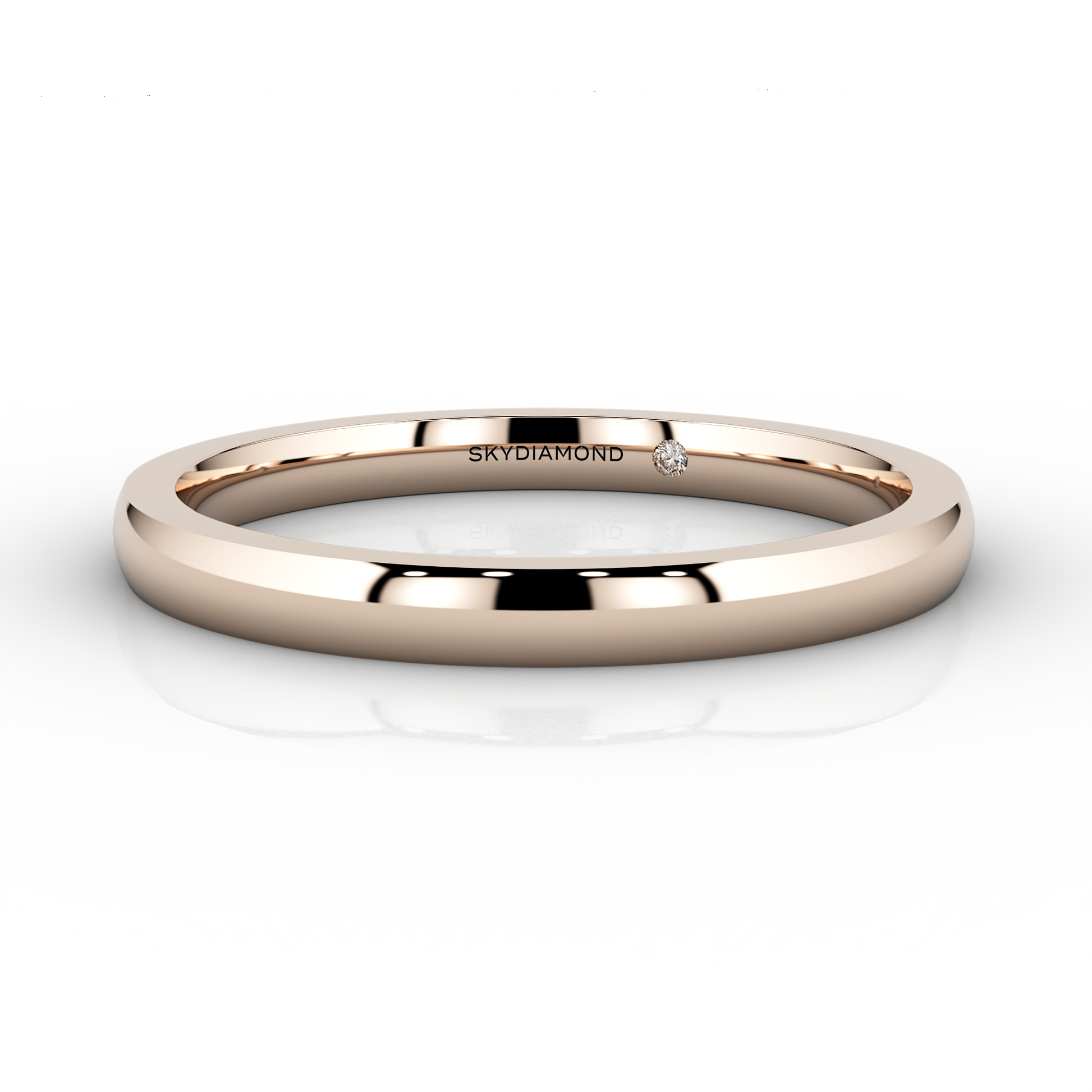 As a celebration of your wedding day, each ring is set with our own 1mm Skydiamond in a subtle flush setting — our special gift to you.