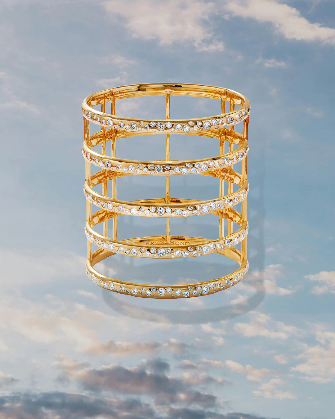 The Hera Cuffs embody the strength and presence of the Queen of the Gods. Designed as bold statement pieces, each cuff features over 12cts of shimmering Skydiamonds in a continuous sweep of brilliance, set in recycled 18ct yellow gold. Powerful yet refined, they are jewels of confidence, whether worn alone or as a commanding pair.